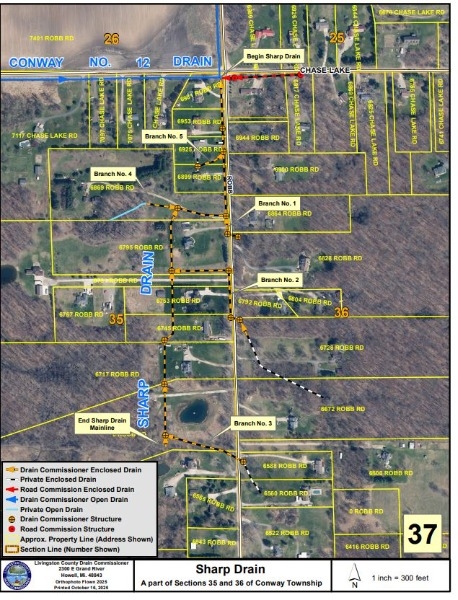 Use the link below to see information regarding the Sharp Drain Assesment. We also have attached the list of all 2025 Drain Assessments for Livingston county. Sharp Drain Assesment.pdf YearlyDrainAssessmentList.pdf